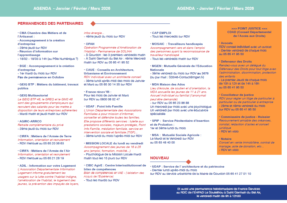 ESPACE FRANCE SERVICES DE GOURDON - AGENDA DU 1er TRIMESTRE 2026